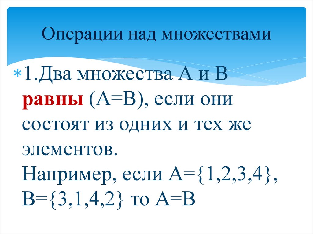 В 1872 г. Георг Кантор, создатель теориимножеств, дал следующие определения для