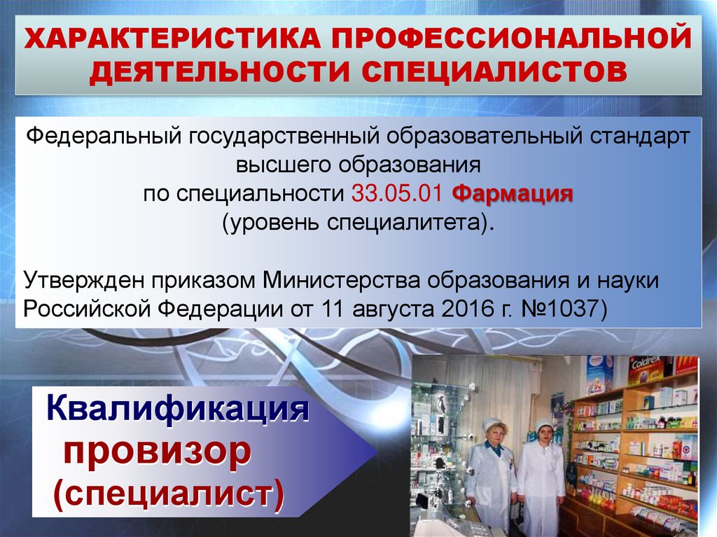 ХАРАКТЕРИСТИКА ПРОФЕССИОНАЛЬНОЙДЕЯТЕЛЬНОСТИ СПЕЦИАЛИСТОВ