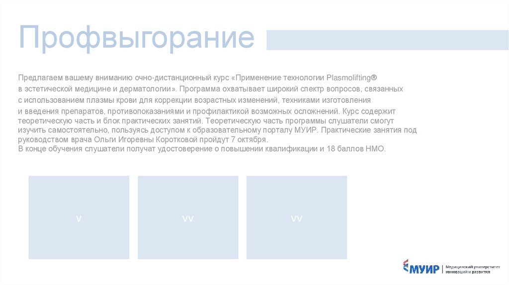 ПрофвыгораниеПредлагаем вашему вниманию очно-дистанционный курс «Применение технологии Plasmolifting®