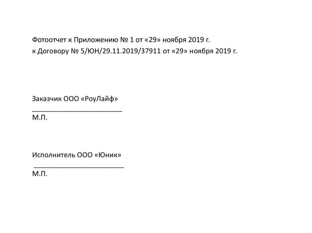 Фотоотчет к Приложению № 1 от «29» ноября 2019 г. к Договору № 5/ЮН/29.11.2019/37911 от «29» ноября 2019 г