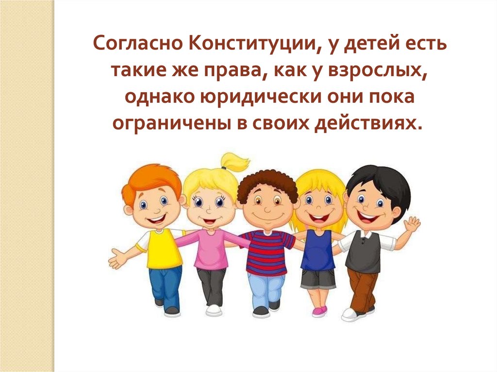 Согласно Конституции, у детей естьтакие же права, как у взрослых,