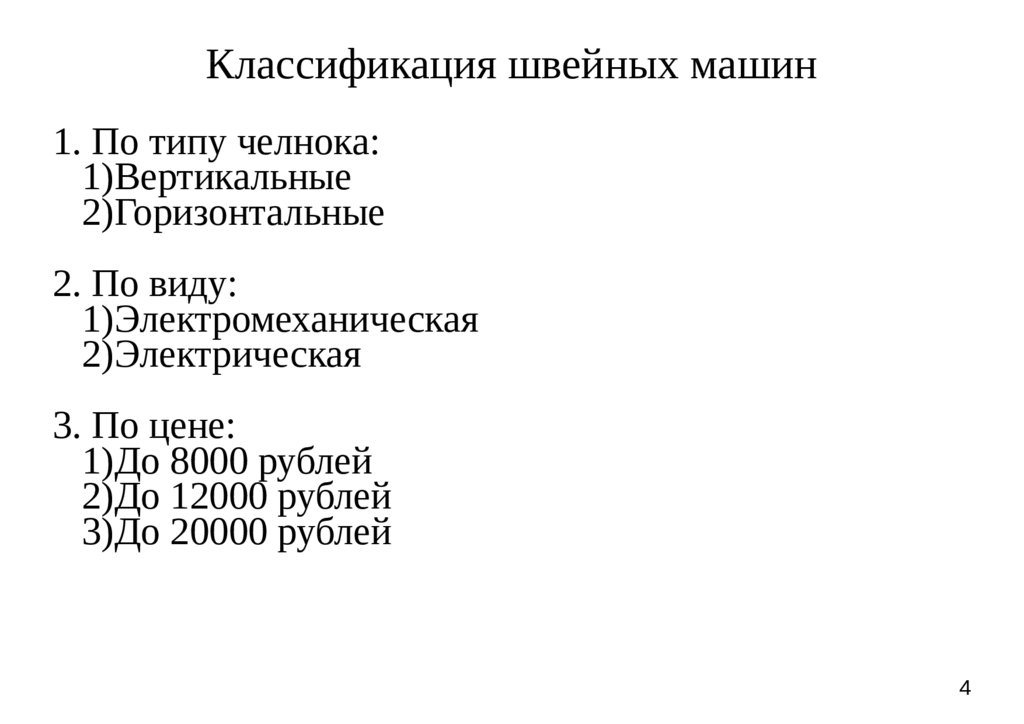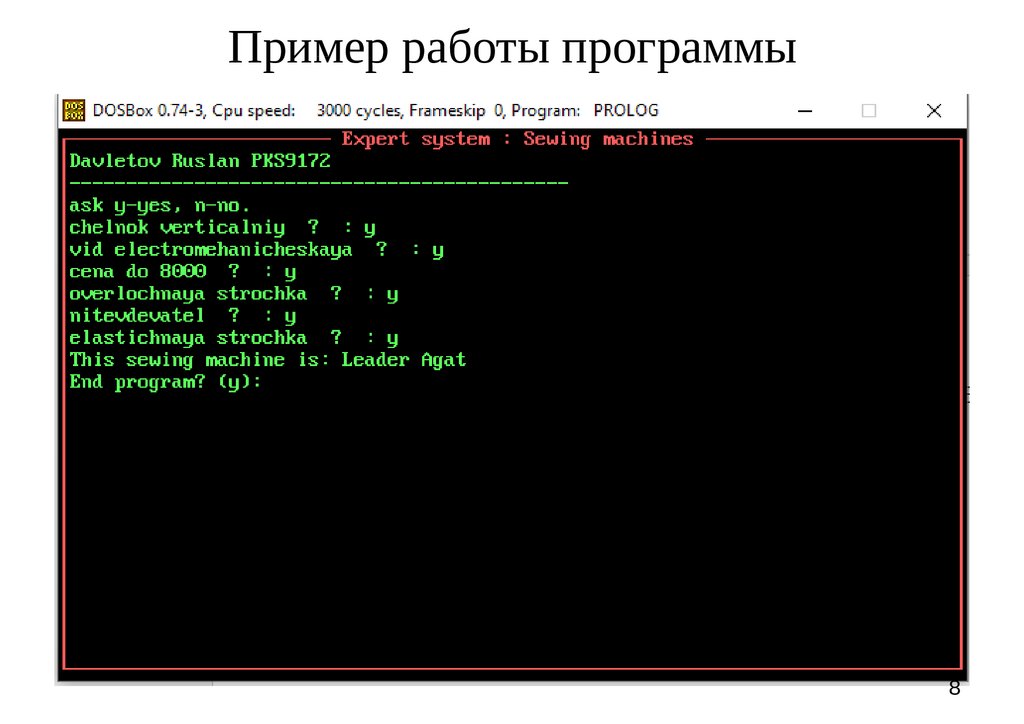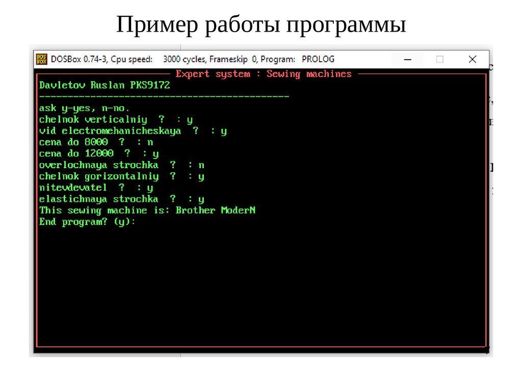 Разработка фрагмента экспертной системы, предназначенной для выбора и покупки необходимой швейной машинки