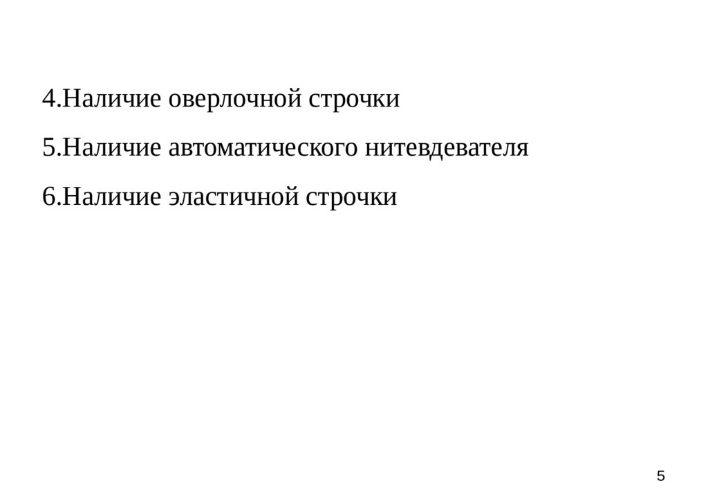 4.Наличие оверлочной строчки5.Наличие автоматического нитевдевателя