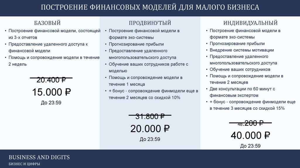 • + бонус - сопровождение финмодели еще