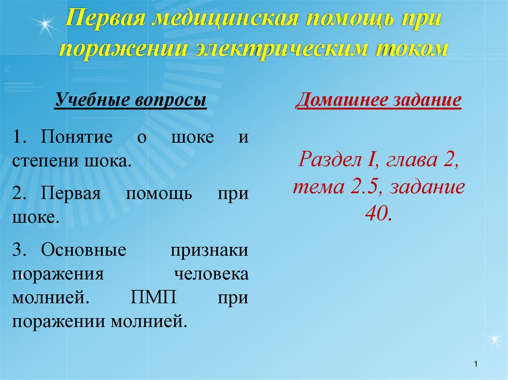 1. Первая медицинская помощь при поражении электрическим током