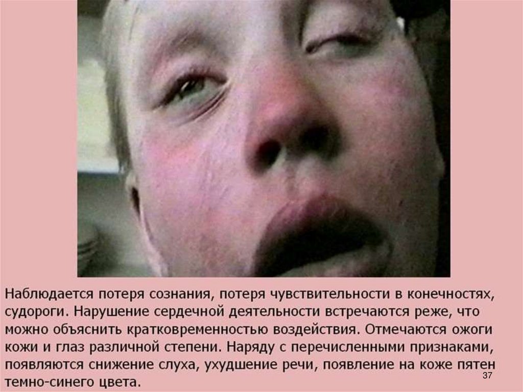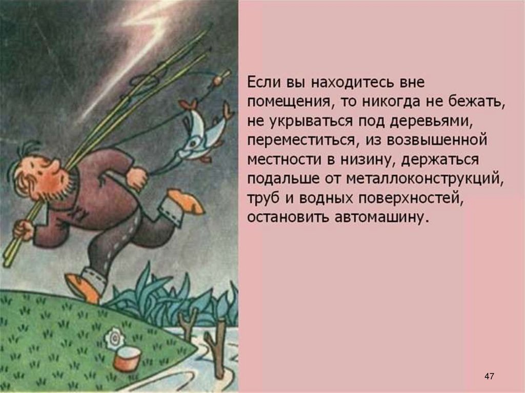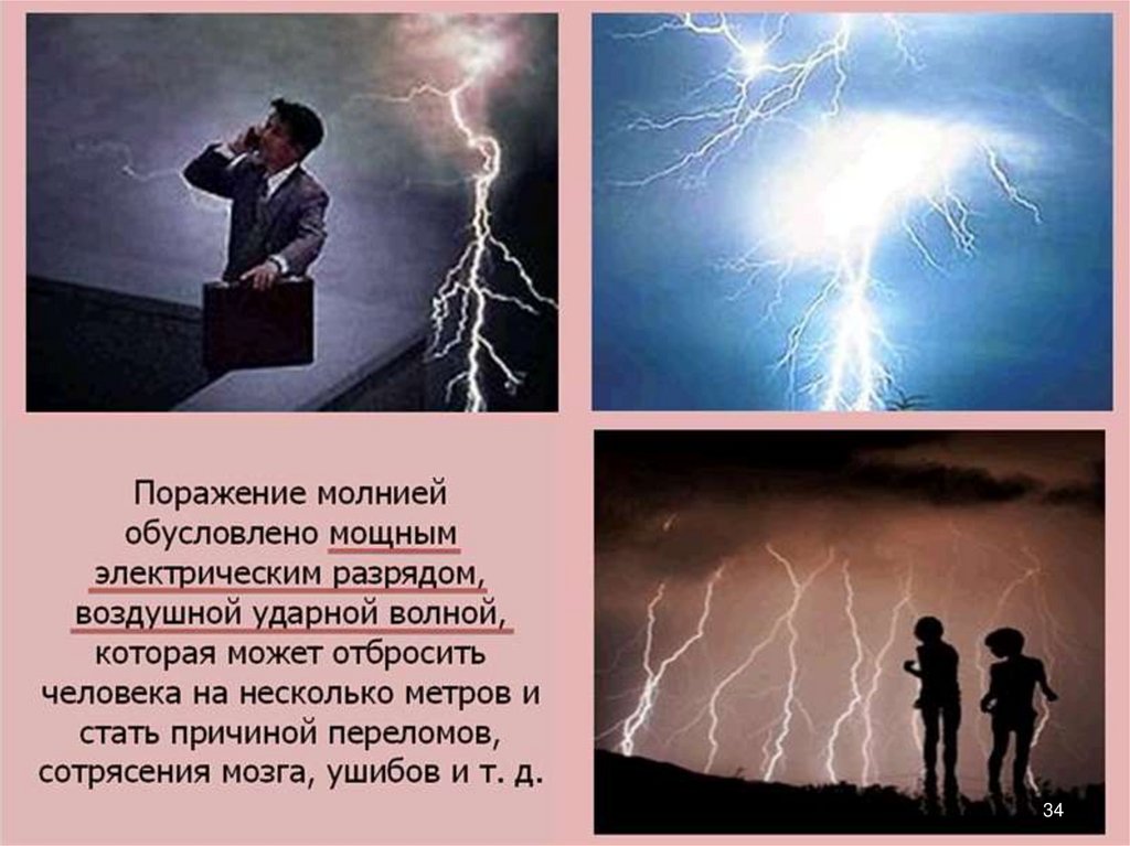 поражении молнией.