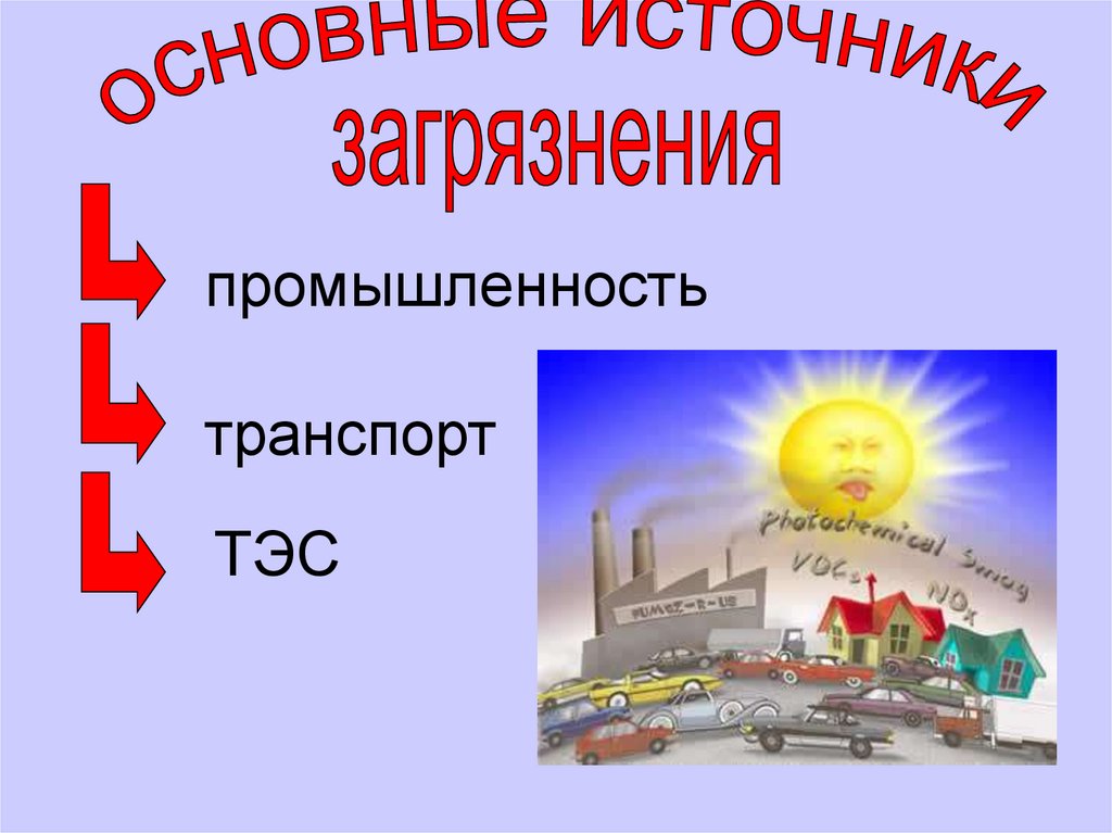 • Загрязнение атмосферы происходит врезультате выброса промышленностью,