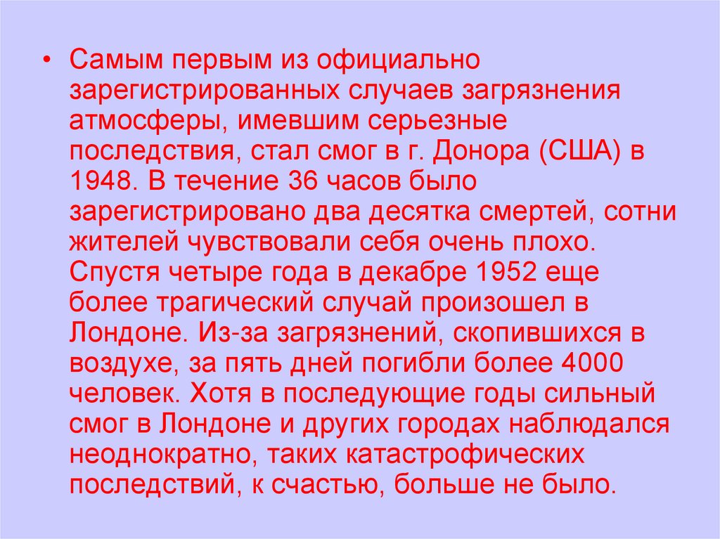последствия, стал смог в г. Донора (США) в