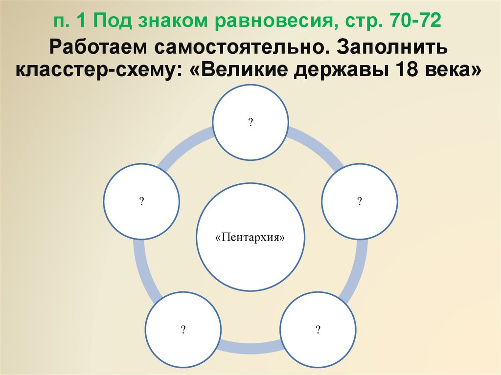 п. 1 Под знаком равновесия, стр. 70-72Работаем самостоятельно. Заполнить