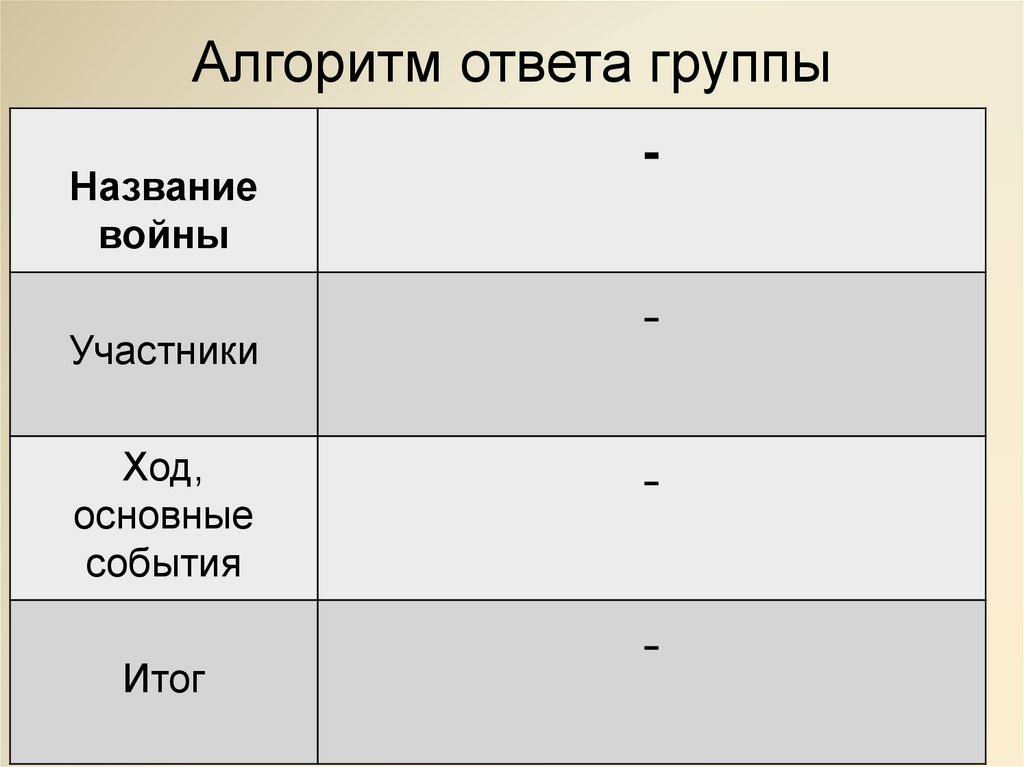 Алгоритм ответа группыНазвание