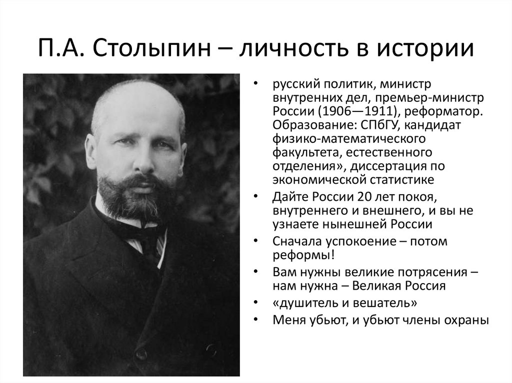 П.А. Столыпин – личность в истории