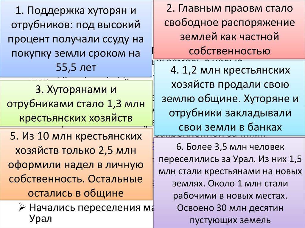 2. Главным праовм стало1. Поддержка хуторян и