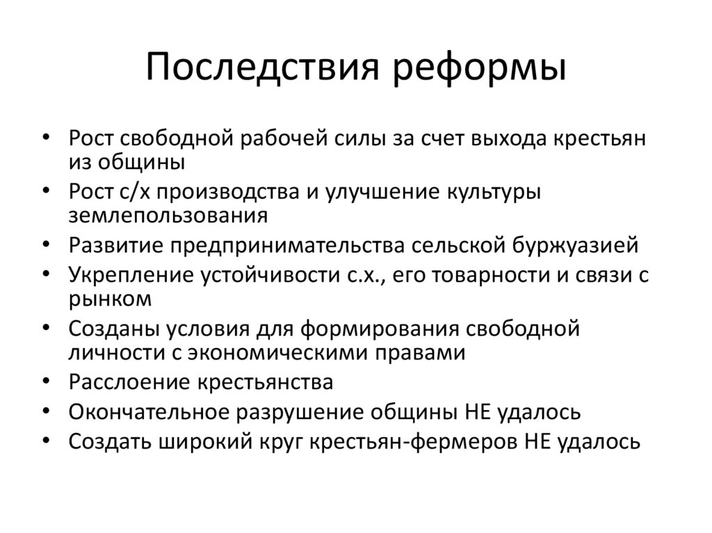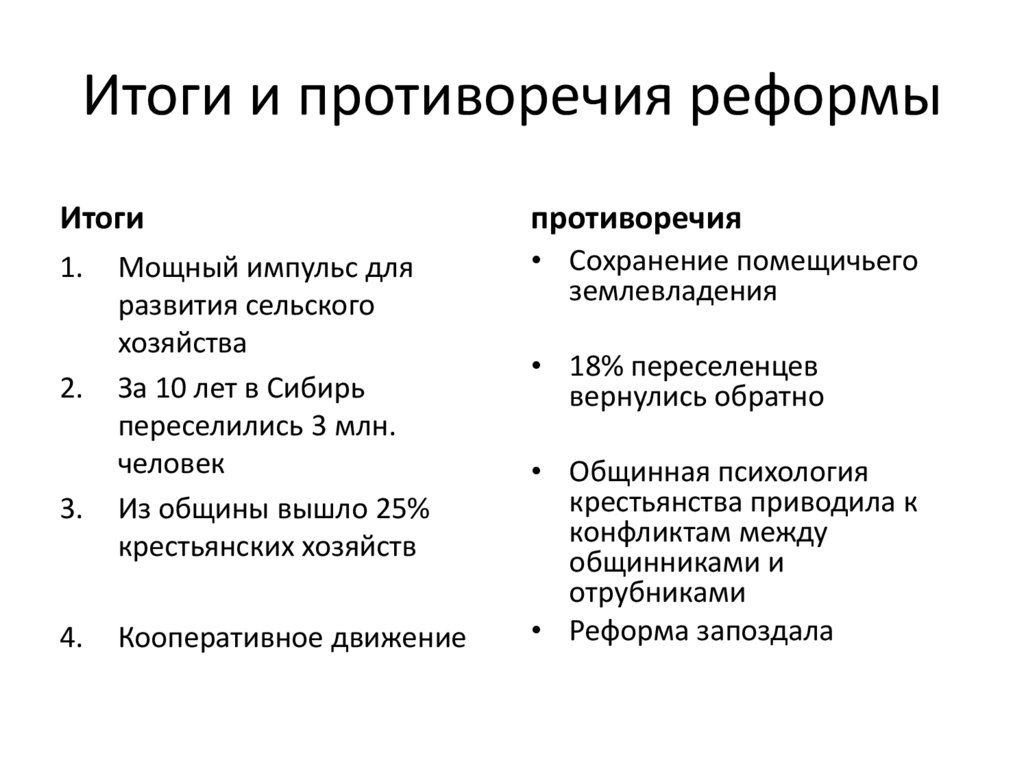 Итоги и противоречия реформыИтоги