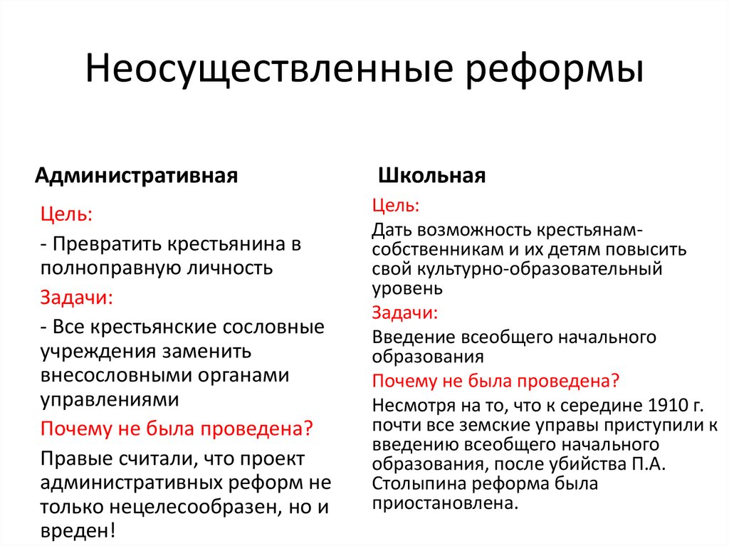 Неосуществленные реформы.