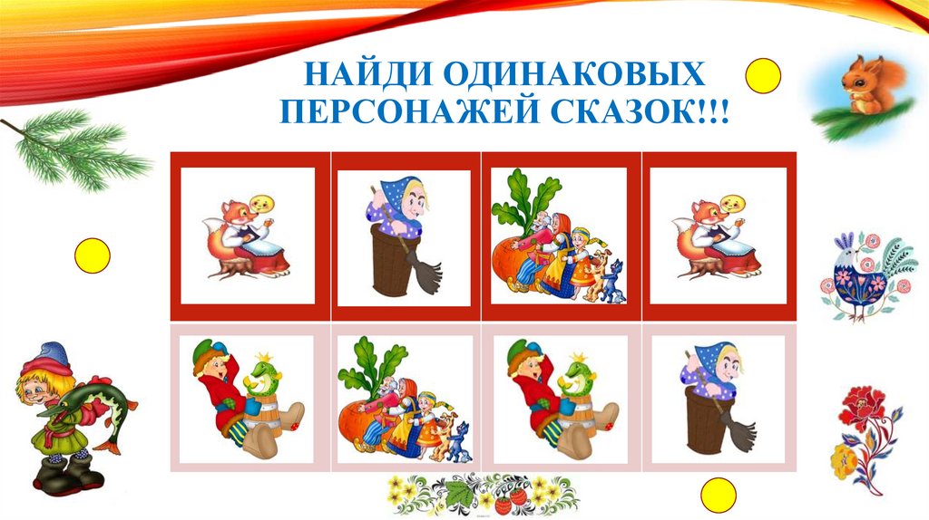 НАЙДИ ОДИНАКОВЫХПЕРСОНАЖЕЙ СКАЗОК!!!