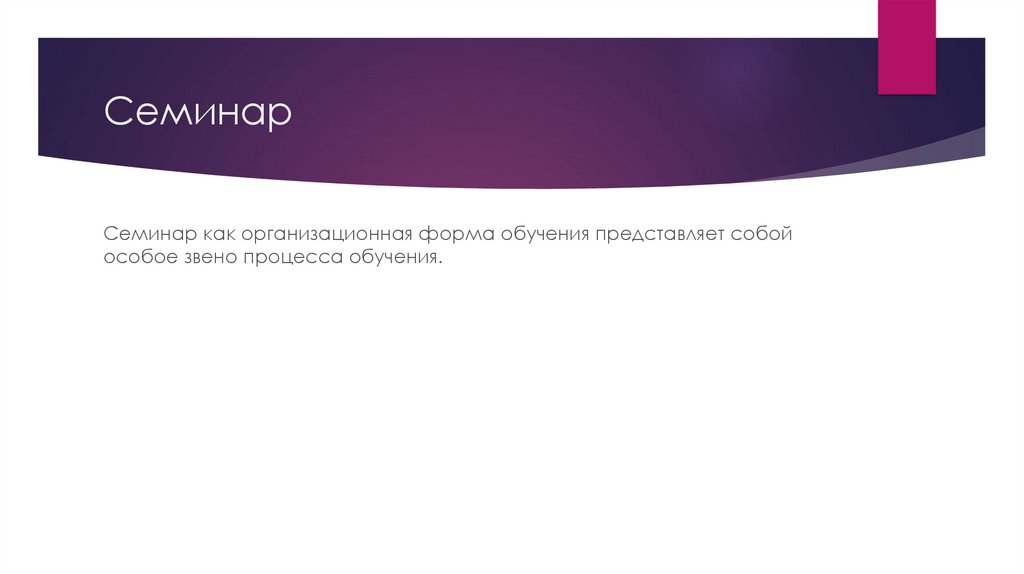 В зависимости от способа проведения выделяютследующие виды семинаров: