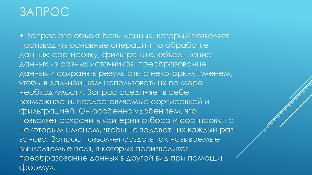 ЗАПРОС• Запрос это объект базы данных, который позволяет