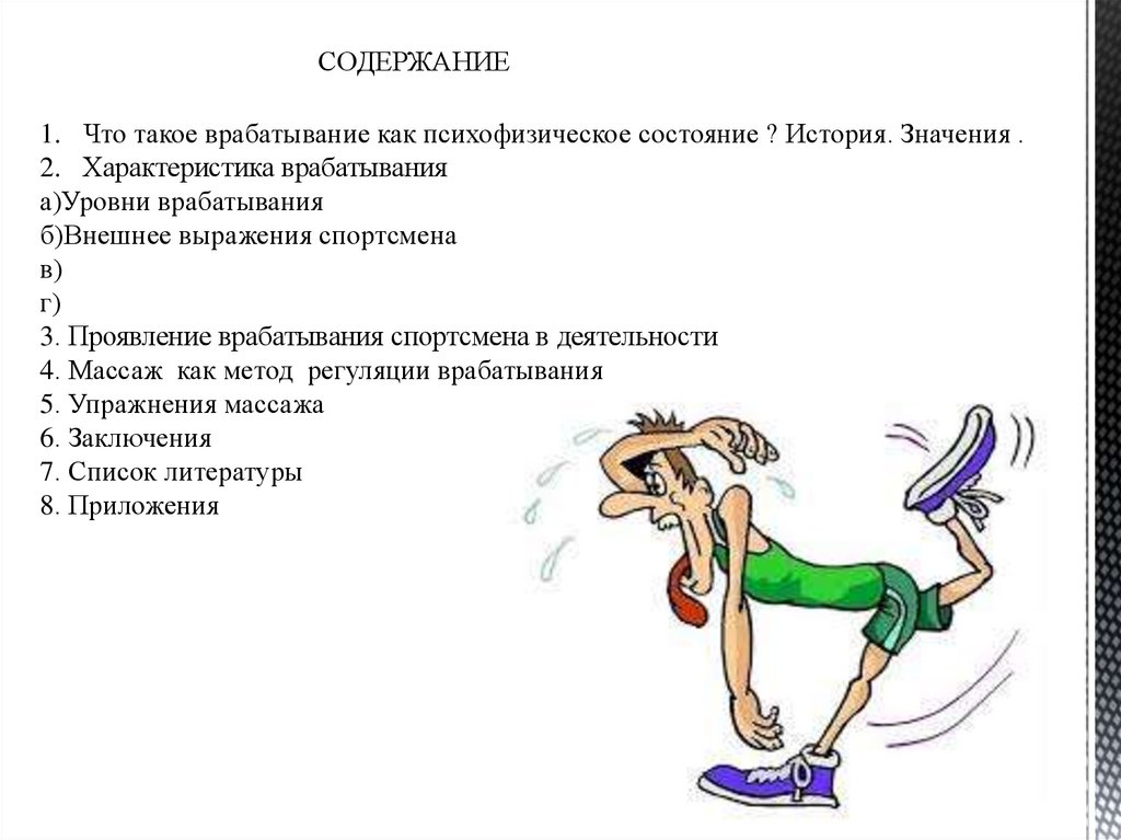 СОДЕРЖАНИЕ1. Что такое врабатывание как психофизическое состояние ? История. Значения .