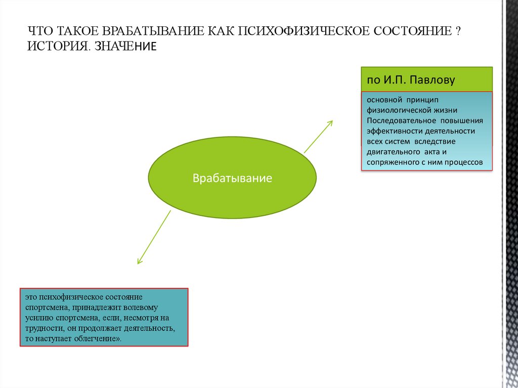 ЧТО ТАКОЕ ВРАБАТЫВАНИЕ КАК ПСИХОФИЗИЧЕСКОЕ СОСТОЯНИЕ ?ИСТОРИЯ. ЗНАЧЕНИЕ