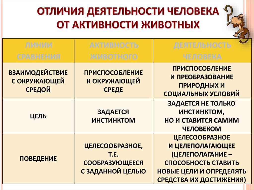 ОТЛИЧИЯ ДЕЯТЕЛЬНОСТИ ЧЕЛОВЕКАОТ АКТИВНОСТИ ЖИВОТНЫХ
