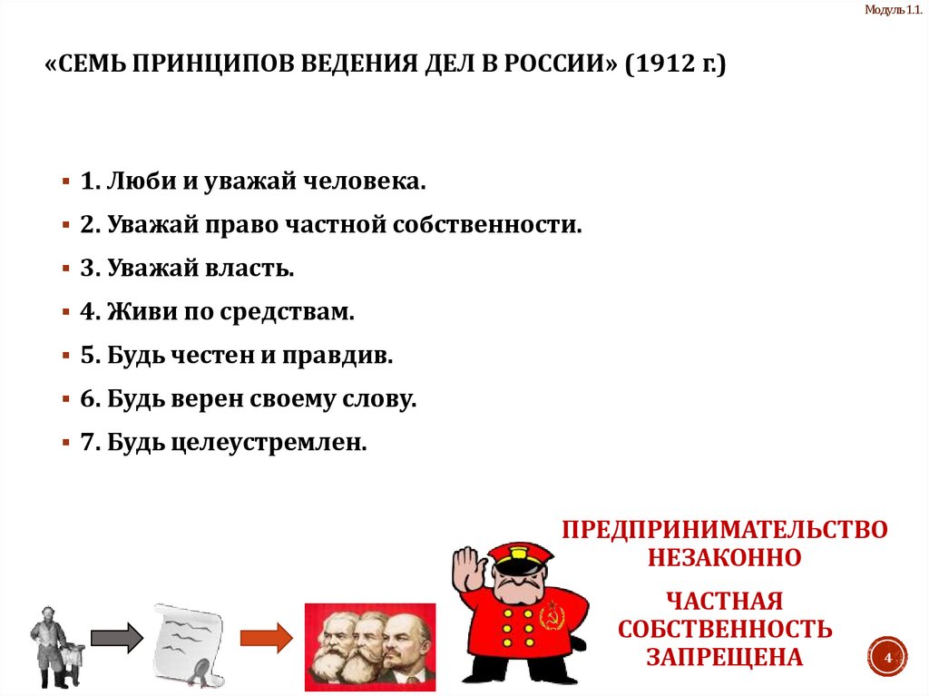 Модуль 1.1.«СЕМЬ ПРИНЦИПОВ ВЕДЕНИЯ ДЕЛ В РОССИИ» (1912 г.)