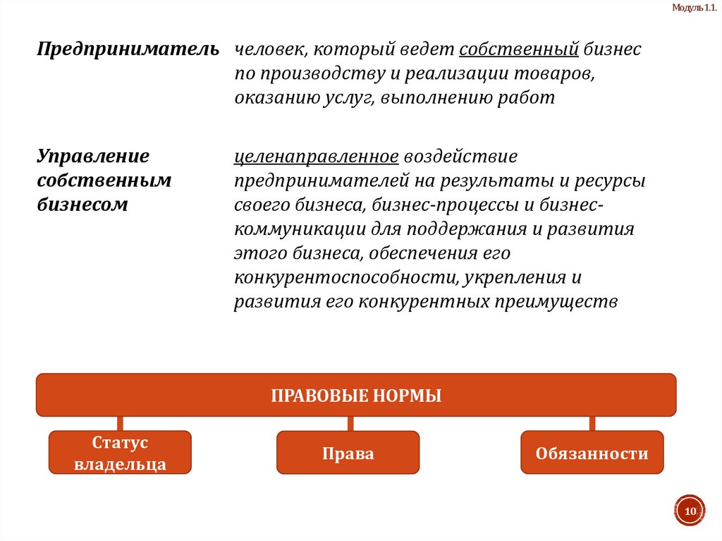 Модуль 1.1.Предприниматель человек, который ведет собственный бизнес