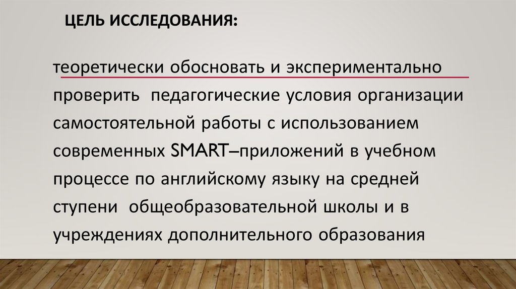 ЦЕЛЬ ИССЛЕДОВАНИЯ:теоретически обосновать и экспериментально