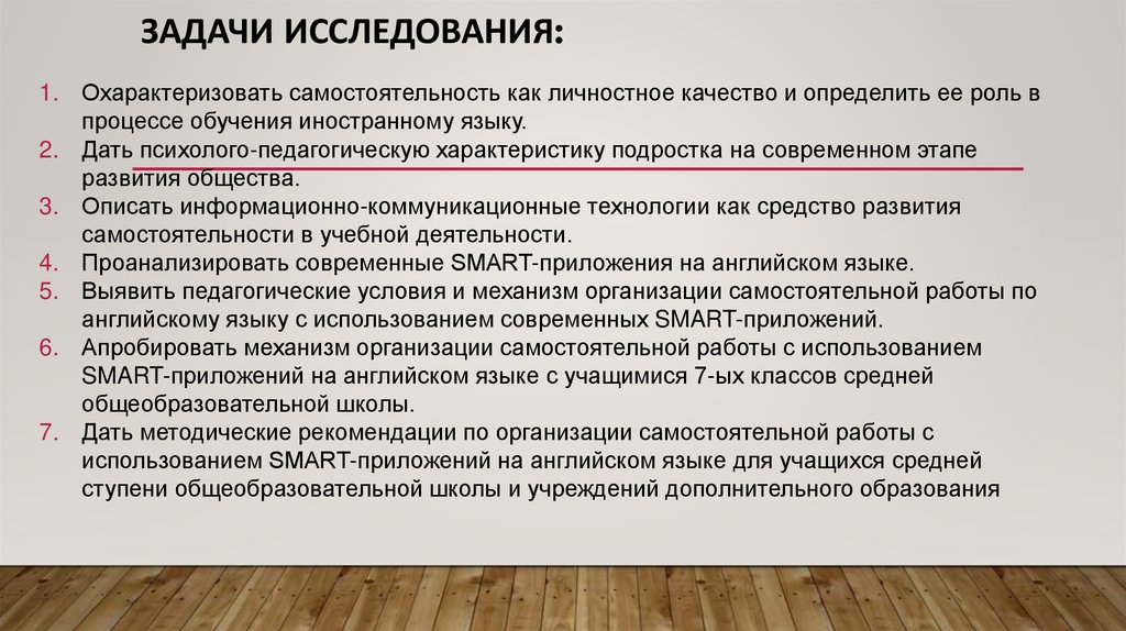 ЗАДАЧИ ИССЛЕДОВАНИЯ:1. Охарактеризовать самостоятельность как личностное качество и определить ее роль в