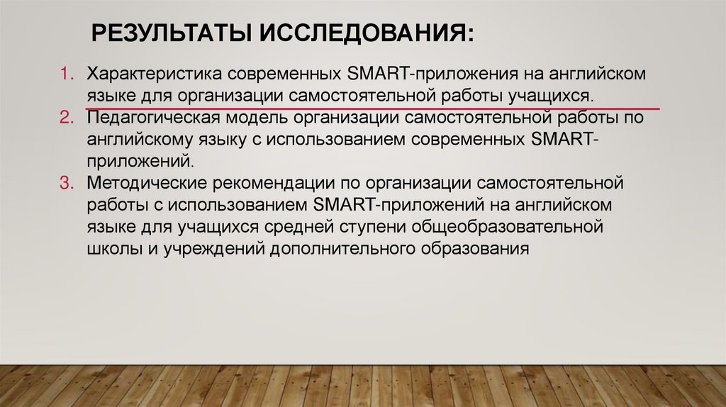 РЕЗУЛЬТАТЫ ИССЛЕДОВАНИЯ:1. Характеристика современных SMART-приложения на английском