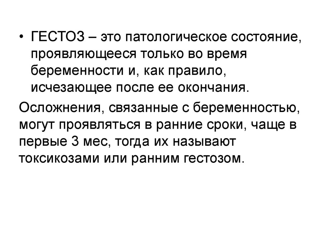 • ГЕСТОЗ – это патологическое состояние,проявляющееся только во время