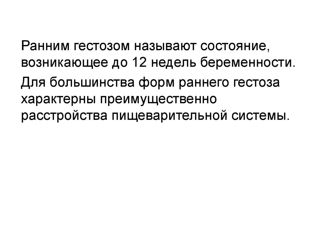 Ранним гестозом называют состояние,возникающее до 12 недель беременности.