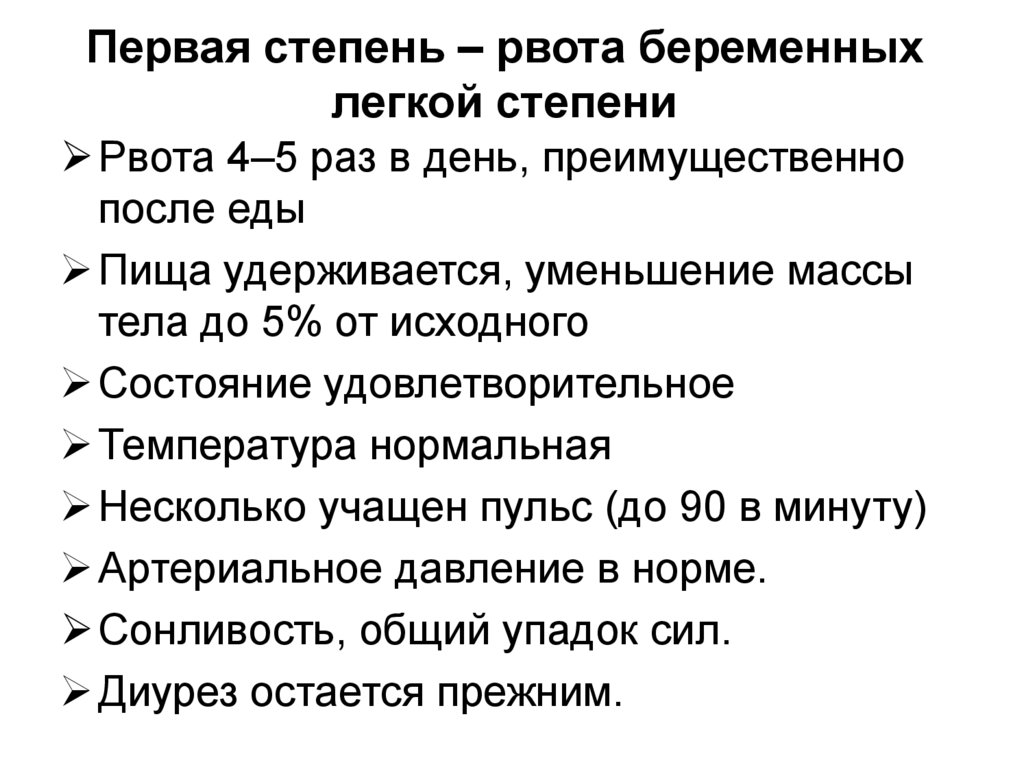 Первая степень – рвота беременныхлегкой степени