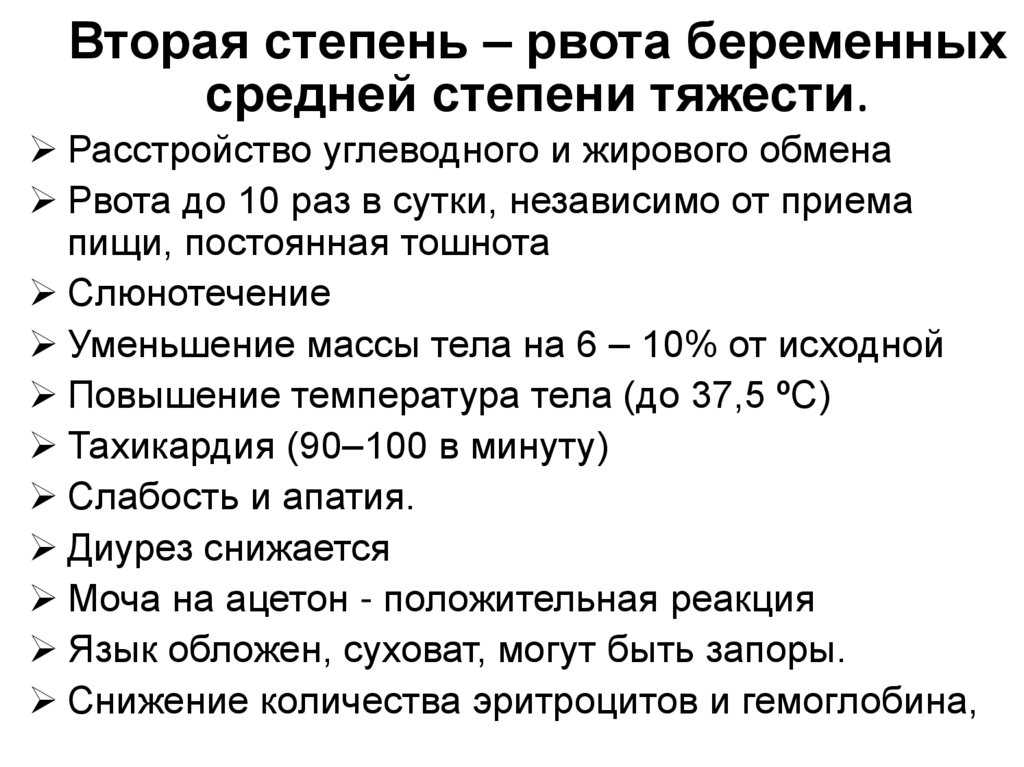 Вторая степень – рвота беременныхсредней степени тяжести.