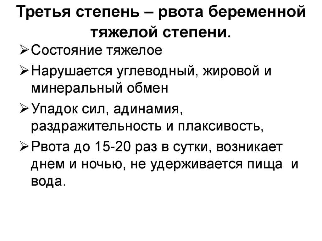 Третья степень – рвота беременнойтяжелой степени.