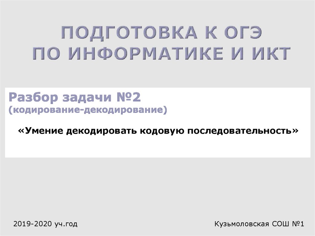 «Умение декодировать кодовую последовательность». ОГЭ - 2 (N2)