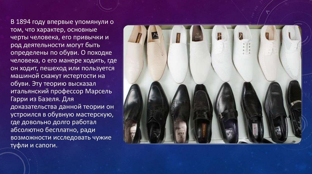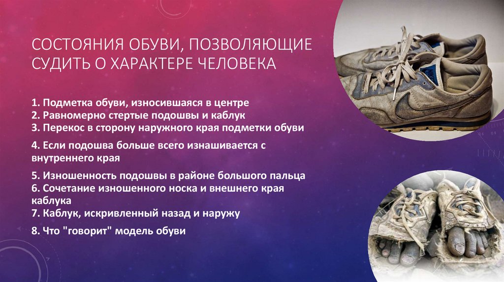 СОСТОЯНИЯ ОБУВИ, ПОЗВОЛЯЮЩИЕСУДИТЬ О ХАРАКТЕРЕ ЧЕЛОВЕКА