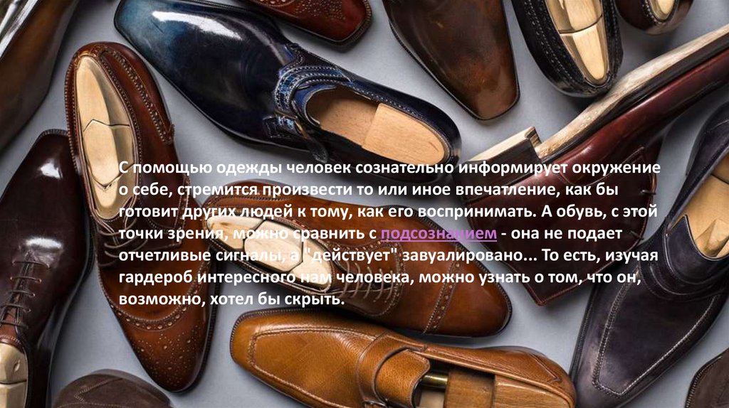 готовит других людей к тому, как его воспринимать. А обувь, с этой