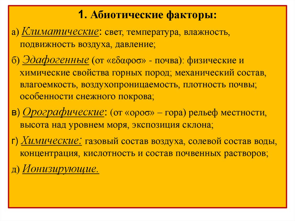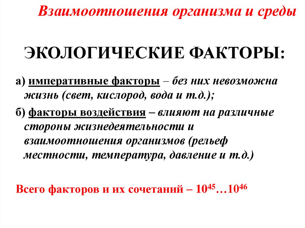 Взаимоотношения организма и средыЭКОЛОГИЧЕСКИЕ ФАКТОРЫ: