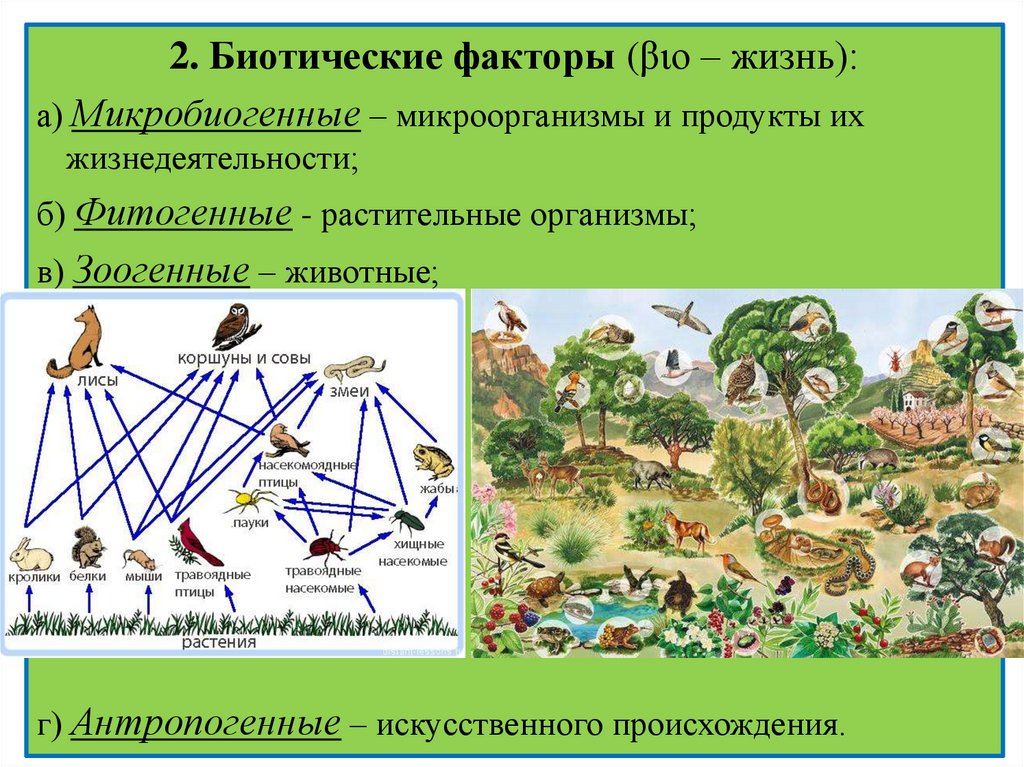 2. Биотические факторы (βιο – жизнь):а) Микробиогенные – микроорганизмы и продукты их