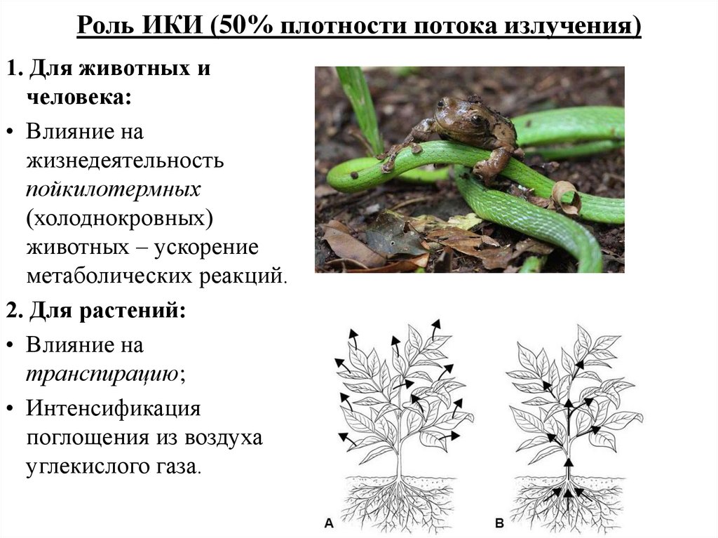 Роль ИКИ (50% плотности потока излучения)1. Для животных и