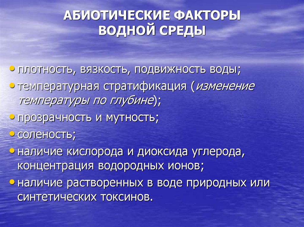 АБИОТИЧЕСКИЕ ФАКТОРЫВОДНОЙ СРЕДЫ