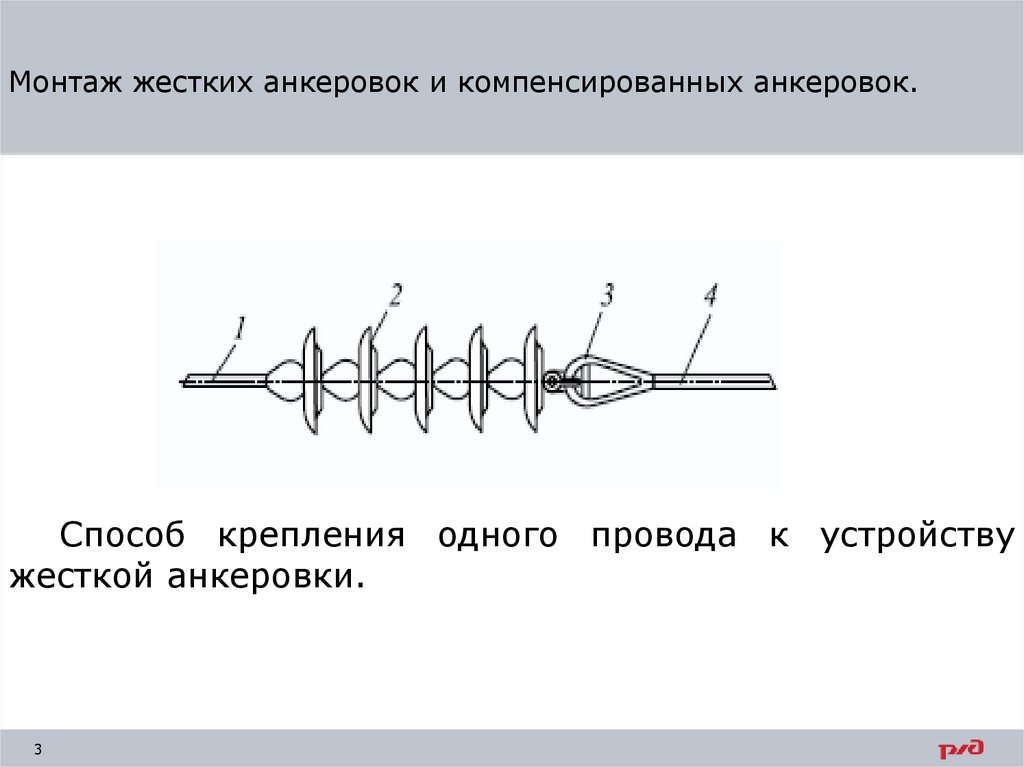 Монтаж жестких анкеровок и компенсированных анкеровок.Способ крепления одного провода к устройству