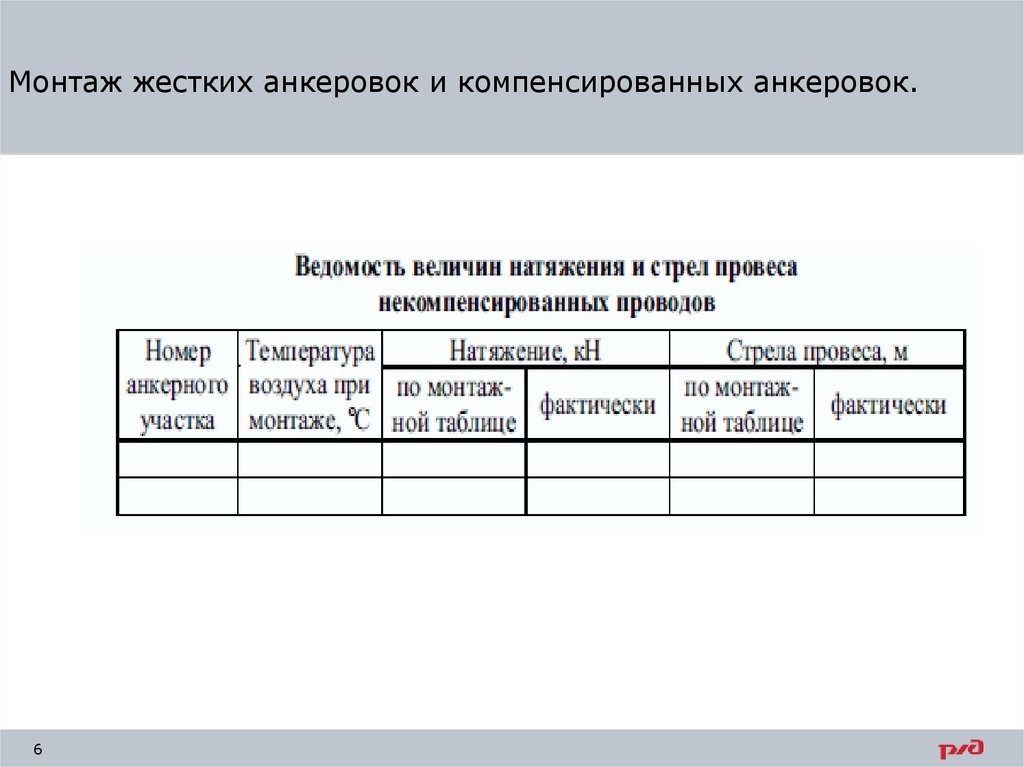 Монтаж жестких анкеровок и компенсированных анкеровок.6