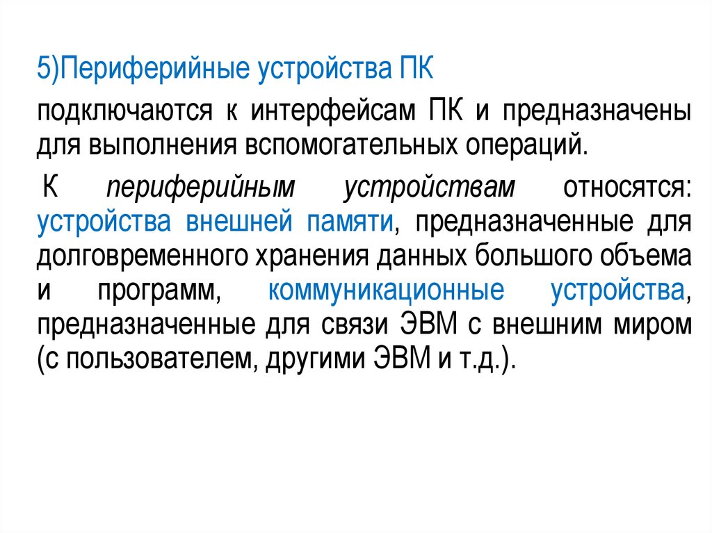 5)Периферийные устройства ПКподключаются к интерфейсам ПК и предназначены