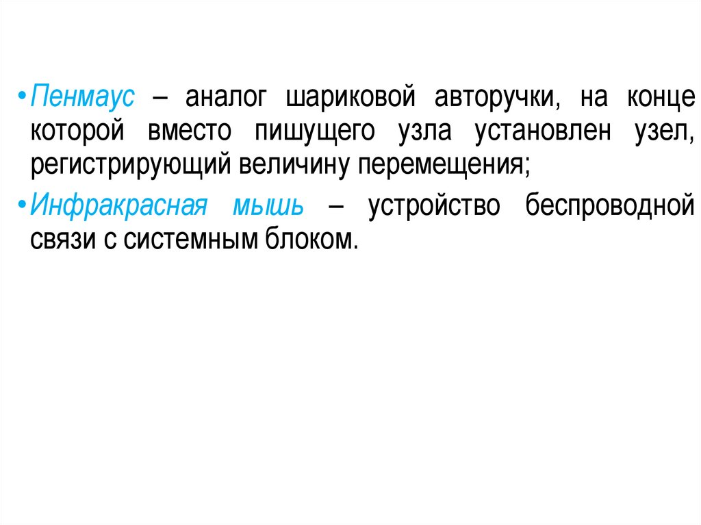 •Пенмаус – аналог шариковой авторучки, на концекоторой вместо пишущего узла установлен узел,