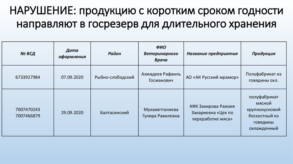 НАРУШЕНИЕ: истёк срок годности№ п\п