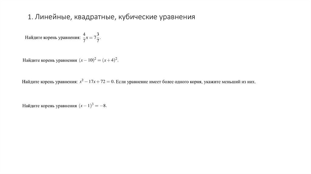 1. Линейные, квадратные, кубические уравнения