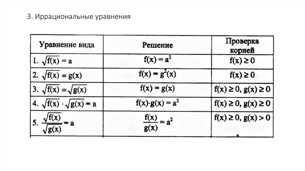 3. Иррациональные уравнения