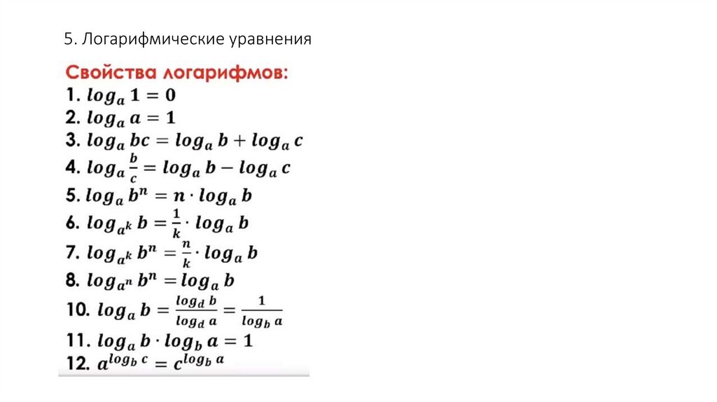 5. Логарифмические уравнения