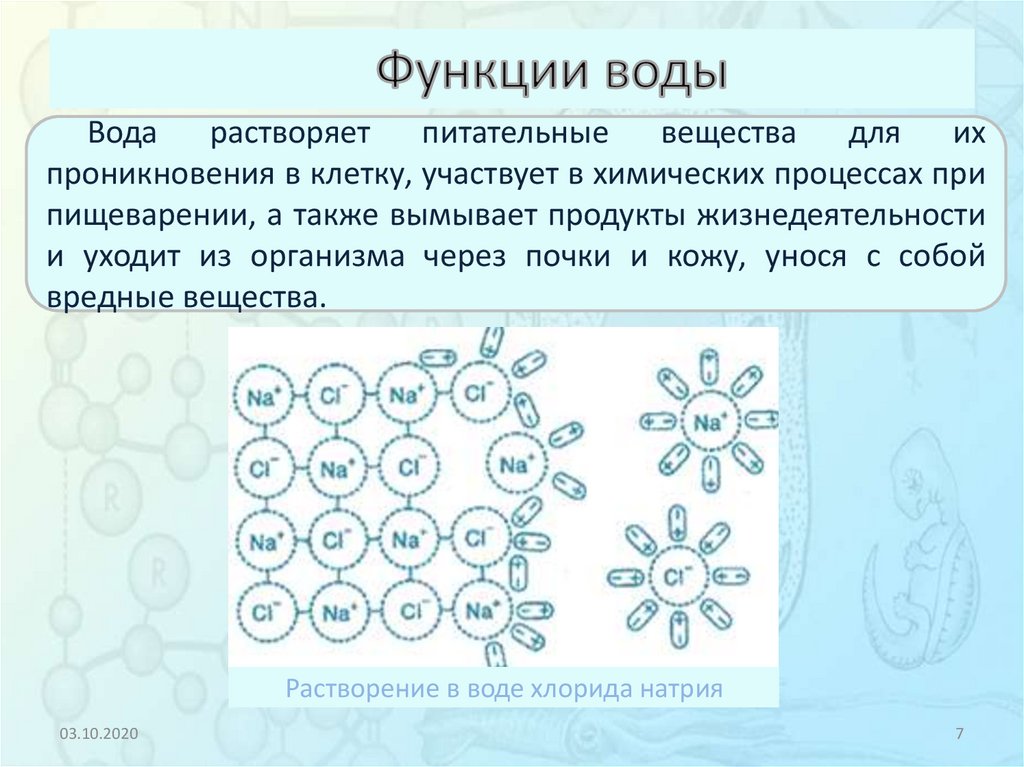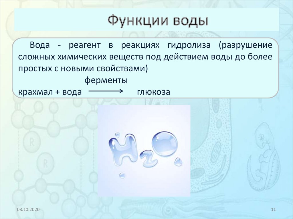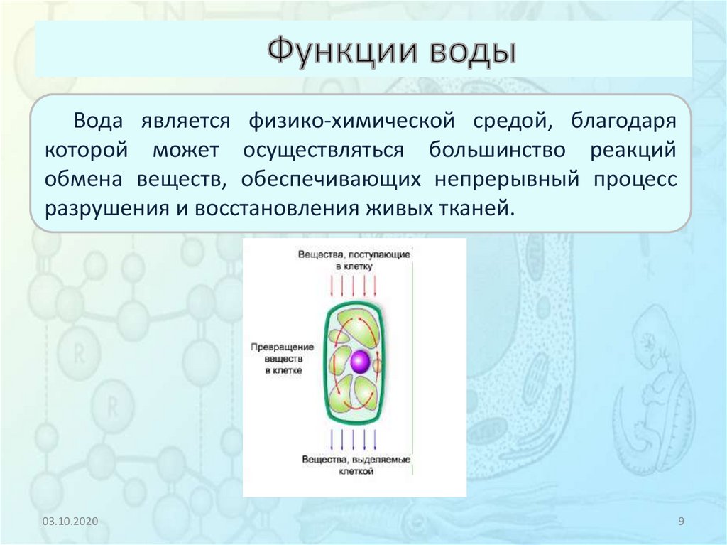 Вода является физико-химической средой, благодарякоторой может осуществляться большинство реакций